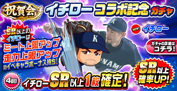 4回目の10連ガチャは 「SR」以上の 「イチロー」が必ず1枚出現!